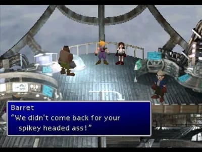 This is Cid’s response to Hojo’s defeat, which is a bunch of random swearing. Normally, random expletives would be used as a surprised response to something. I don’t know why they chose not to give Cid at least some of his dialogue and just censor the swear.