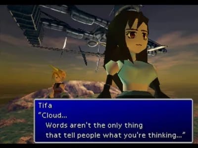 This always seemed like a total non sequitur to me. I guess it’s because Cloud keeps asking questions? In any case, the English is accurate etc. etc.