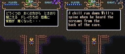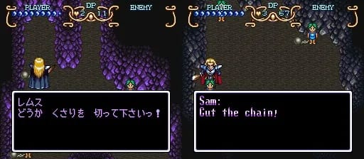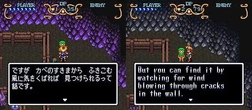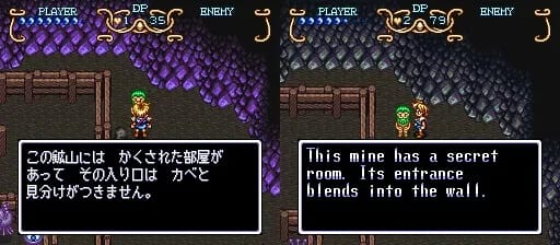 Something you’ll notice about the mine is that the cave walls are different colors in the Japanese and US versions of the game. They changed all the purple rocks to a relatively dull gray. Kind of unfortunate, in my opinion. I don’t understand why you’d do that.