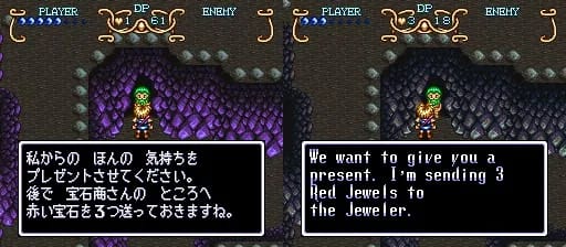 私からの ほんの 気持ちを プレゼントさせてください。 後で 宝石商さんの ところへ 赤い宝石を3つ送っておきますね。 | We want to give you a present. I’m sending 3 Red Jewels to the Jeweler. | It’s not much compared to my gratitude, but allow me to give you a present. I’m going to send 3 Red Jewels to the Jeweler. |