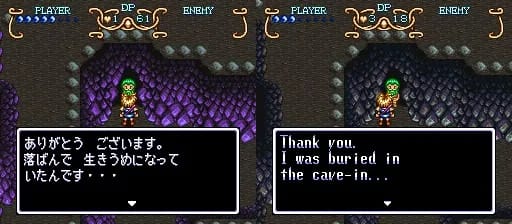この鉱山には 私も ふくめて 8人のドレイが 働かされています。 どうか 助けてあげて下さい。 | There are eight laborers including me forced to work in the mine. | Including me, there are 8 slaves working in this mine. Please rescue all of them. |