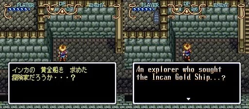 After this, we exit onto the cliff face where we’re supposed to use the two Incan idols. You do actually need to put statue A in the rightmost altar and statue B in the left altar. If you don’t, it tells you the shape is wrong. Unfortunately I forgot to grab a screenshot of this, but I have the Japanese text from a previous playthrough.