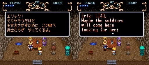 エリック: そりゃそうだけど 王女をさがすために この町へ 兵士たちが やってくるよ。 | Erik: LIAR! Maybe the soldiers will come here looking for her! | Erik: That’s true, but soldiers will come around here looking for the princess. |