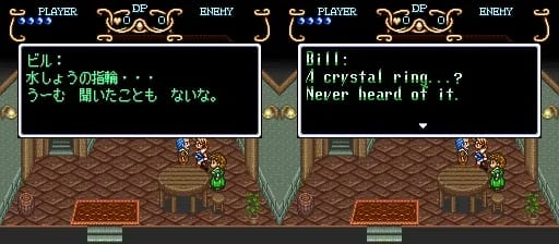 ビル: 水しょうの指輪... うーむ 聞いたことも ないな。 | Bill: A crystal ring…? Never heard of it. | Bill: A crystal ring? Hmm. I haven’t heard of it either. |
