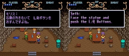 モリス: 石像の方をむいて LRボタンを おすんですよね。 | Seth: Face the statue and push the L/R Buttons. | Morris: Face the stone statue and press the L or R button. |