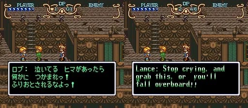 ロブ: 泣いてる ヒマがあったら 何かに つかまれっ! ふりおとされるなよっ! | Lance: Stop crying, and grab this, or you’ll fall overboard!! | Rob: If you’ve got time to cry, grab onto something! don’t get thrown off! |