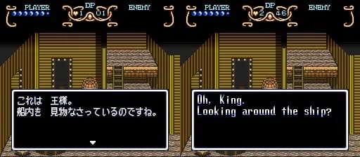 しかし 王様も おつかれのはず。 船をひととおり まわったら このベッドで 少しお休みください。 | But I expect you’re tired. Look around, then rest in this bed. | But your majesty must be tired. After you’ve explored the ship, please rest in this bed. |