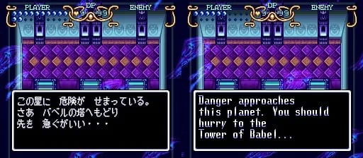 この星に 危険が せまっている。 さあ バベルの塔へもどり 先を 急ぐがいい... | Danger approaches this planet. You should hurry to the Tower of Babel… | This planet is in imminent danger. Come, you’d best hurry back to the Tower of Babel. |