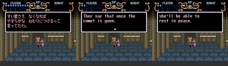 If you weren’t aware, the Japanese version is called Soul Blader. It was released internationally as Soul Blazer, for whatever reason. Anyway, this game correctly localized it. I kept the original just to show the JP, but I’d change it to Blazer too, in a rom hack.