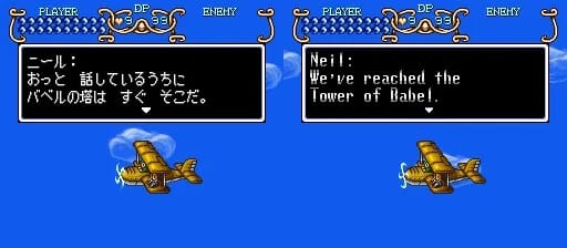 Neil’s plane flies us to the Tower of Babel. It moves on the Mode 7 map the same way everyone does while walking: slooooowly turning one way or another before flying straight.