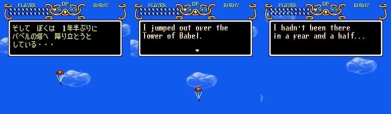 そして ぼくは 1年半ぶりに バベルの塔へ 降り立とうと している... | I jumped out over the Tower of Babel.I hadn’t been there in a year and a half… | And so, for the first time in a year and a half, I’m descending to the Tower of Babel. |