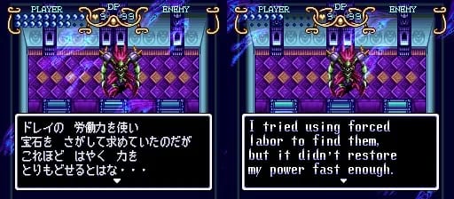 Minor mistranslations in the OE cause a narratively strange exposition. In OE, his story isn’t done. After him saying that the slaves couldn’t find jewels fast enough, you’d expect him to continue into how lucky he was to find you. In JP, that’s basically what he’s saying, so his story is over. Then in OE, he’s weirdly apologetic about having to kill you. He’s thanking you for reviving him, not apologizing for killing you.