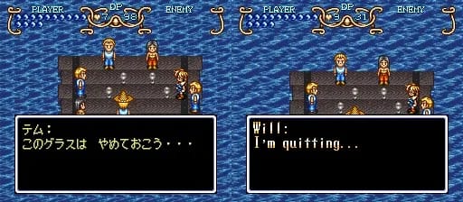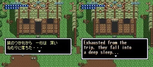 テム: しかたないなあ。 今日は この村にとめてもらおうか。 | Will: There’s nothing we can do. Let’s stay in this village today. | Tim: There’s not much we can do about it. Let’s stay in this village today. |
