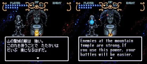 山の聖域の敵は 強い。 この力を使うことで たたかいは だいぶ 楽になるはずだ。 | Enemies at the mountain temple are strong. If you use this power, your battles will be easier. | The Mountain Sacred Grounds enemies are strong. Using this power will make fights considerably easier. |