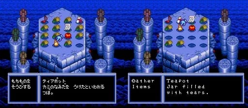 The JP version suddenly decides that this thing’s text should be a very light blue instead of white. OE has been consistent with the colors the whole time.