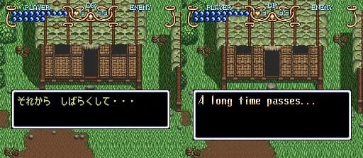ここには 神がすみ 永遠の命が 手に入るという うわさだったが 目に うつったのは まものの姿 だけであった... | Rumor says that you can gain immortality here where the spirits live, | There were rumors that you could gain eternal life here, where god lives. But all I saw were monsters. |