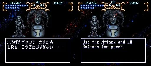 こうげきボタンで 力をため LRを こうごにおすがよい... | Use the Attack and LR Buttons for power. | Store power with the Attack Button, then alternate the L and R buttons. |
