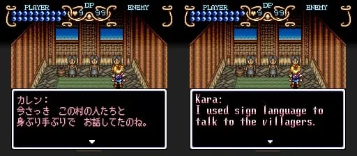 カレン: 今さっき この村の人たちと 身ぶり手ぶりで お話してたのね。 | Kara: I used sign language to talk to the villagers. | Karen: Just now I was talking to the villagers using gestures. |