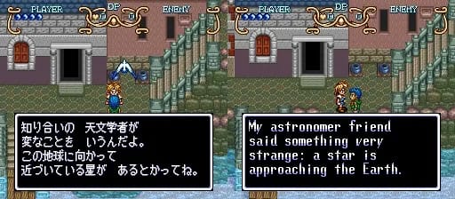 This is the first mention of the comet, the game’s… primary antagonist, I guess? Anyway, a difficulty here is that 星 (hoshi) can mean star, planet, or any heavenly body. But “there’s a heavenly body coming towards earth” sounds weird to me. Star will have to do.