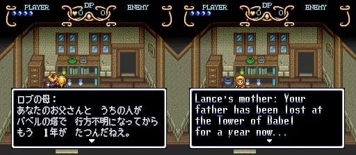ロブの母: あなたのお父さんと うちの人が バベルの塔で 行方不明になってから もう 1年が たつんだねえ。 | Lance’s mother: Your father has been lost at the Tower of Babel for a year now… | Rob’s mother: It’s been 1 year since your father and my husband went missing at the Tower of Babel, hasn’t it? |