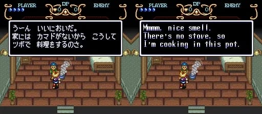 うーん いいにおいだ。 家には カマドがないから こうして ツボで 料理をするのさ。 | Mmm, nice smell. There’s no stove, so I’m cooking in this pot. | Mmm, that’s a good smell. My house doesn’t have a stove, so I do my cooking in a pot. |