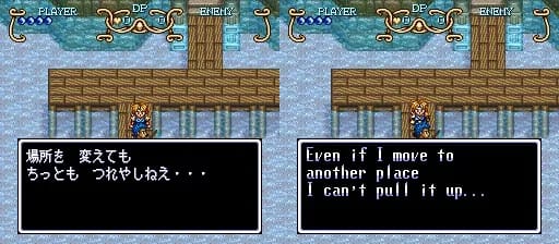For the game on the roof, I’ll give a literal translation, then discuss how I’d actually localize it: