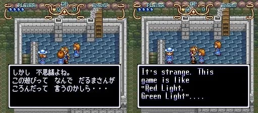 Obviously this won’t work for western audiences. For the first girl, it’s simple enough to change “daruma fell down” to “red light, green light”. (OE chooses counting, which doesn’t fit with what she’s doing. The text changes depending on which way she’s facing.)