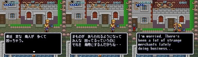 最近 変な 商人が 多くて 困っちゃう。 | I’m worried. There’s been a lot of strange merchants lately doing business… | Recently a lot of suspicious merchants have come around and it’s making me nervous. |
